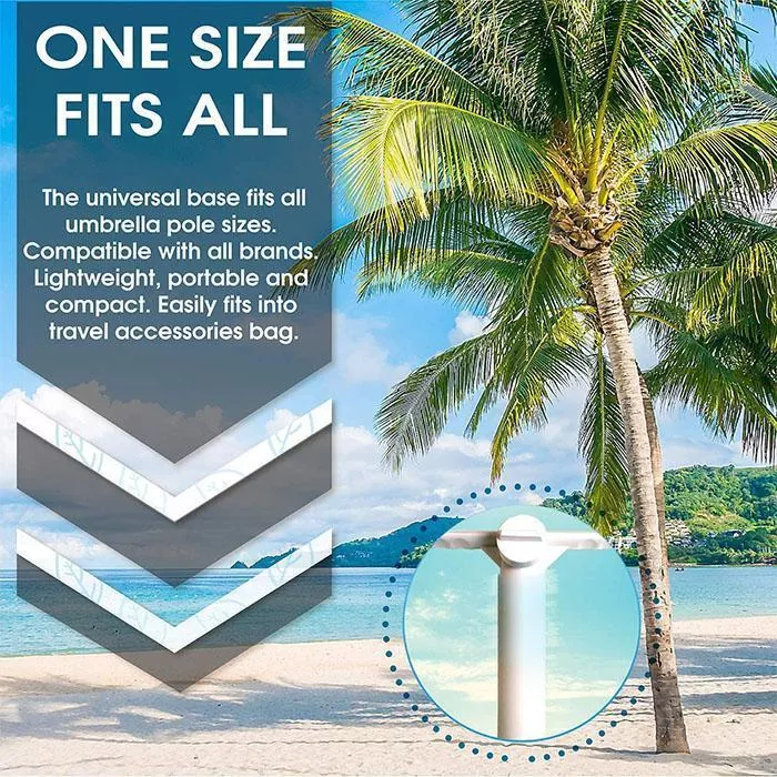 Universal base to fit all umbrella pole sizes, compatible with all brands; Fit in beach, lawn, yard, patio, and garden to enjoy the comfortable wind. The beach hook is adjustable designed to firmly fit beach umbrella from 0.87″ (22mm) to 1.49″ (38mm) diameter beach umbrellas poles.