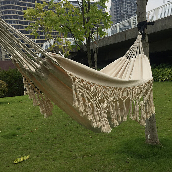 đHigh Quality: Made of 80% sturdy cotton and 20% polyester fiber. High quality construction ensures this hammock will never tear or break with regular use