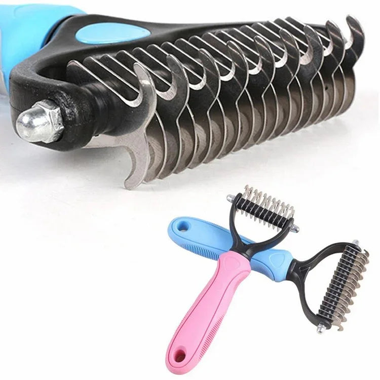 Double Sided Shedding and Dematting Undercoat Rake Pet Grooming Brush