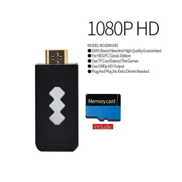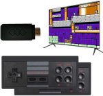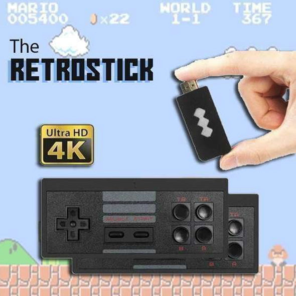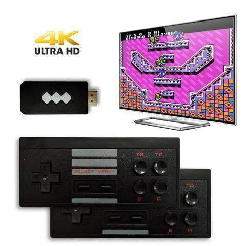 The Classic Mini NES Retro Video Game 4K HDMI Stick Console is designed with two controllers for multiplayer action. Just plug it in and play. Choose games from the menu, create save points, and more. The system comes bundled with two Classic Controllers, 818 NES Retro Video games, TF SD card, and charging cable.