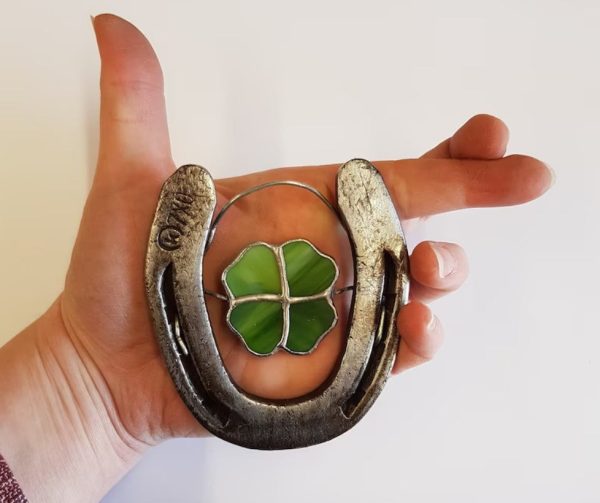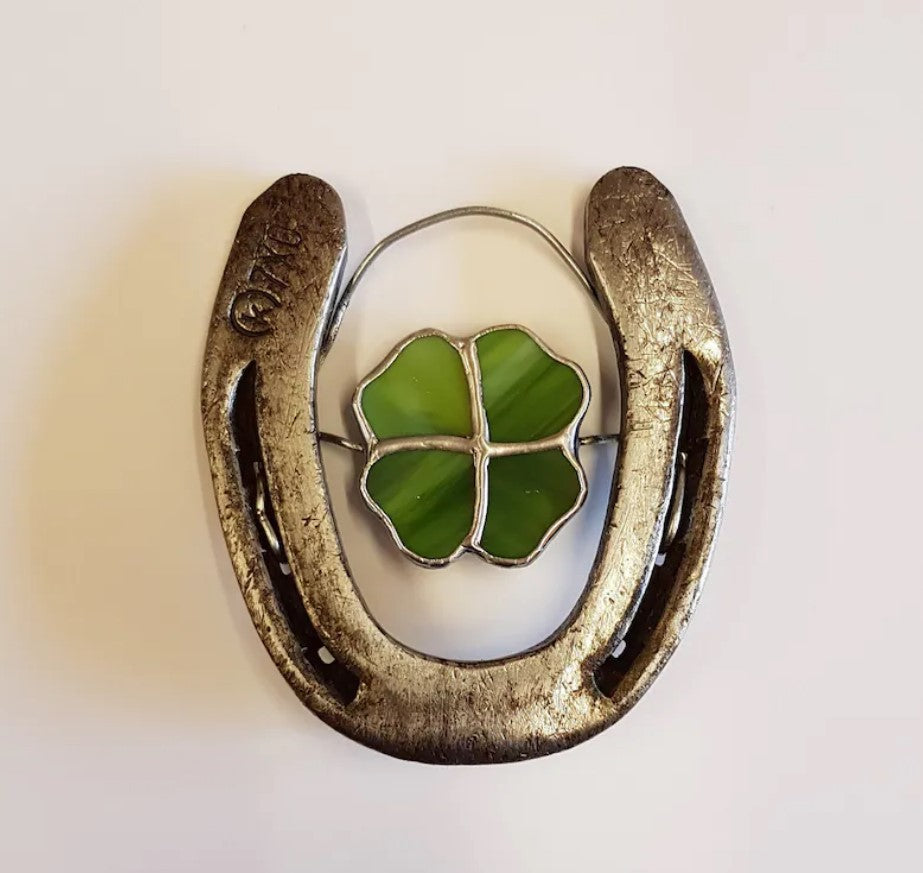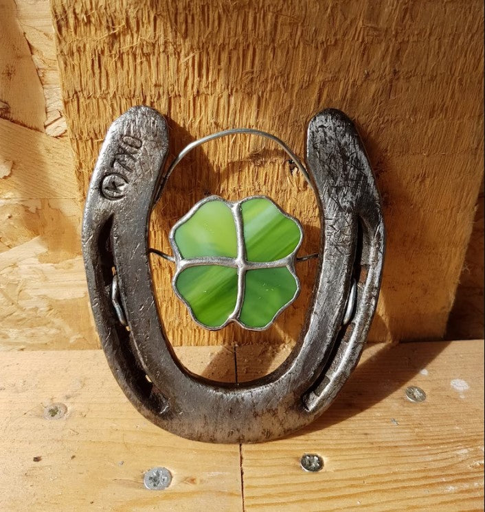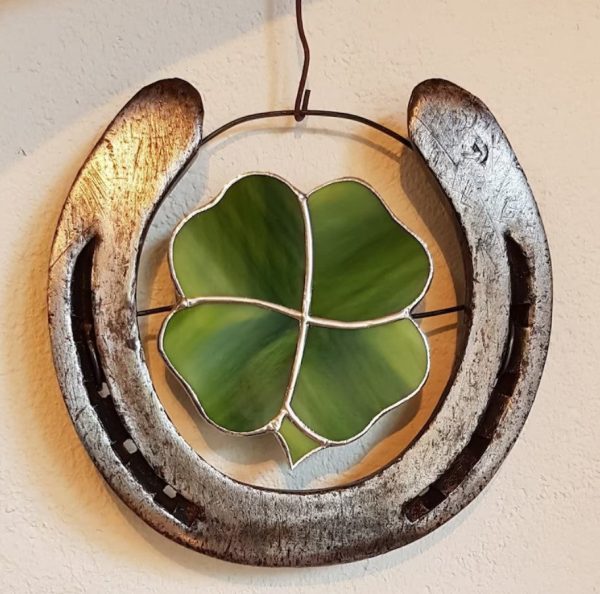 - Real horseshoes with four-leaf clover in stained glass, lucky horseshoes with four-leaf clover as a wonderful gift,Ancient people said, the more the horseshoe wear, on behalf of the more tenacious life.