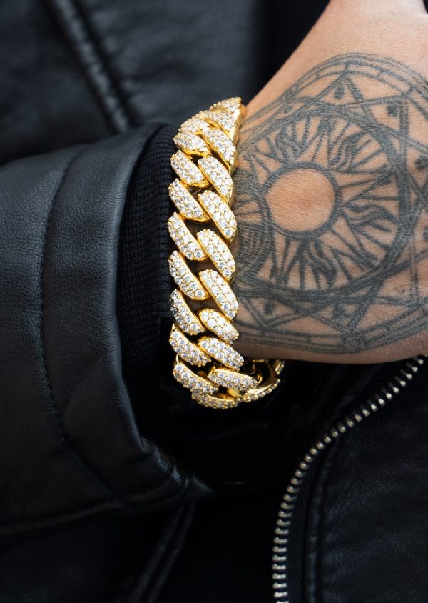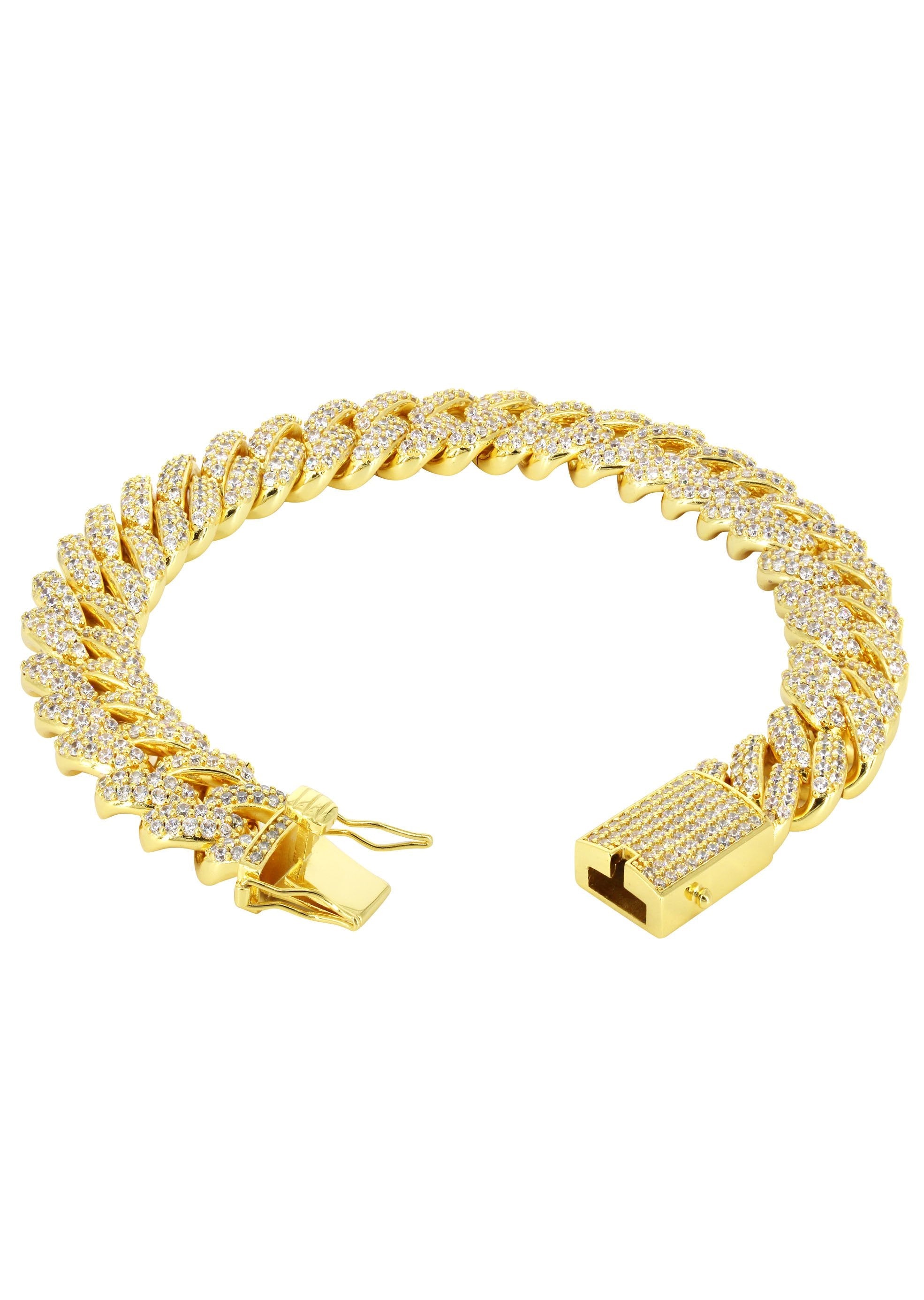 Gold Plated Mens CZ Miami Cuban Link Bracelet. The Bracelet can be customized to any width and length by selecting the options above. Once you select your length and width, the price and the weight will adjust.