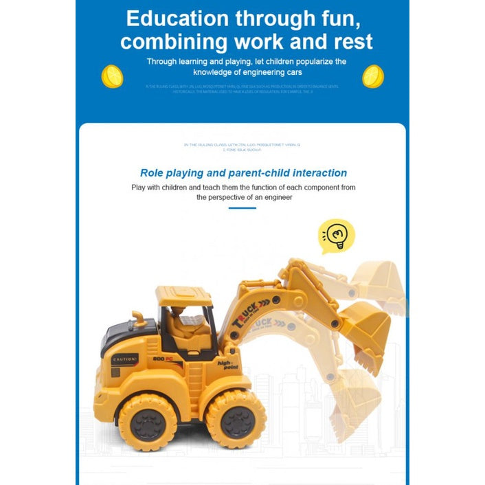 Construction vehicles toys set is made of high-quality ABS plastic + alloy. No Battery Required, 100% safe and Eco-friendly.