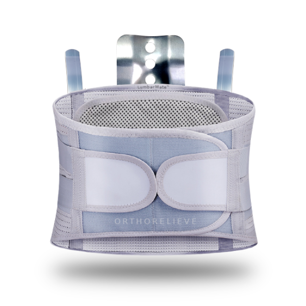 LumbarMate™ is a 360 degree wrap around belt designed to provide compression for the lower back. It relieves lower back pain and improves stability with specially contoured lumbosacral steel and flexible support plates. These plates are removable and can be slotted into a back pocket built into the belt.