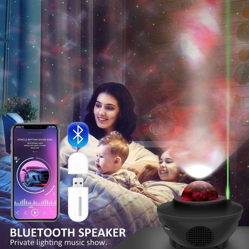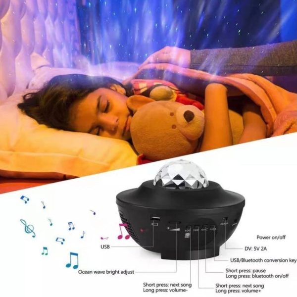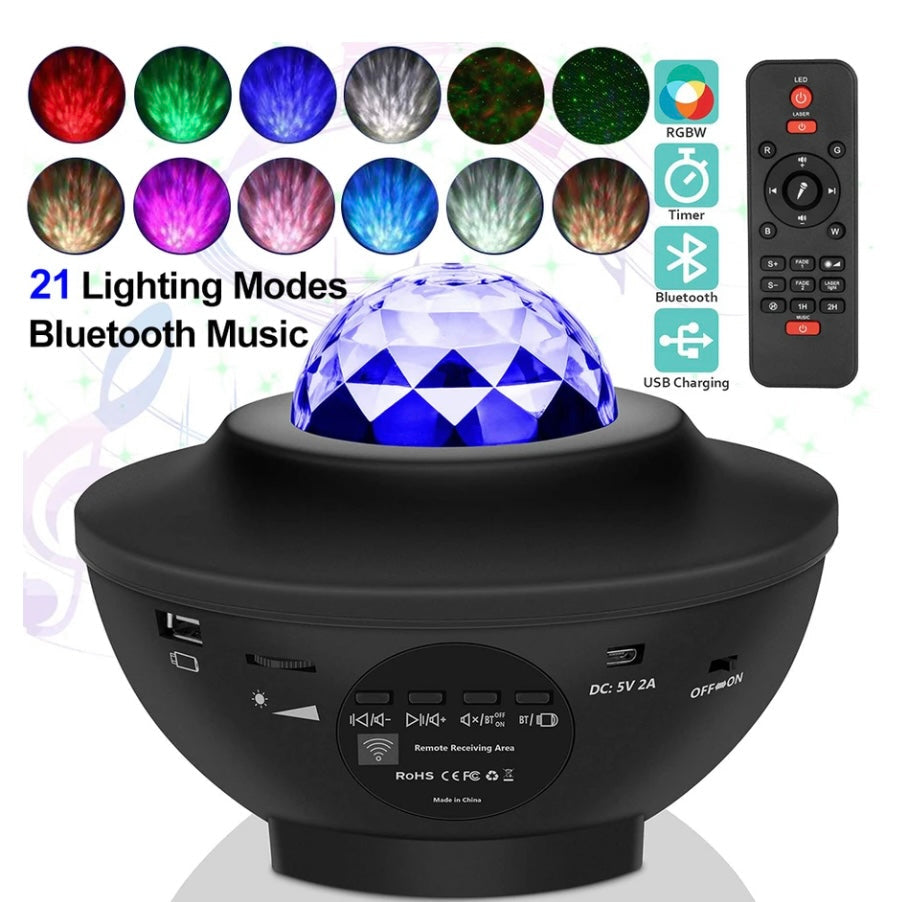 This night light projector can connect to any Bluetooth smartphone and play music from external USB storage via (a) USB port.