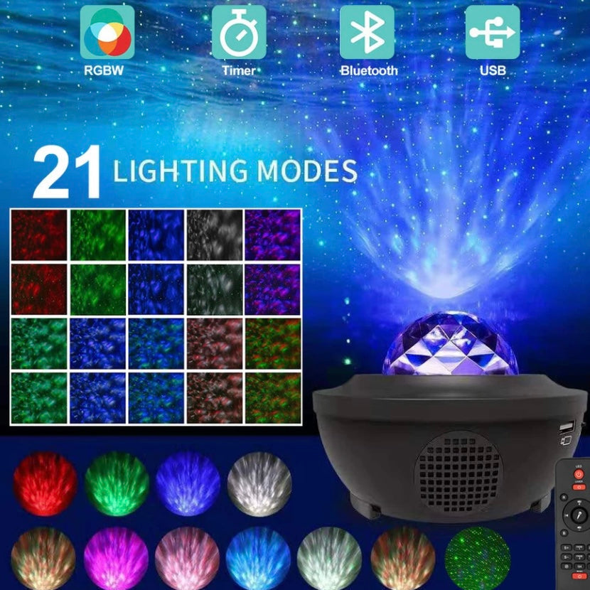 With multiple (color) combinations, this (starlight) projector will produce 10 dynamic light projections.