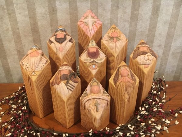 Nine beautifully hand-crafted, wooden pillars represent the classic figures of the nativity.Makes a wonderful addition to any nativity collection.A new take on the classic holiday decoration with Stunning and noticeable on your home.
