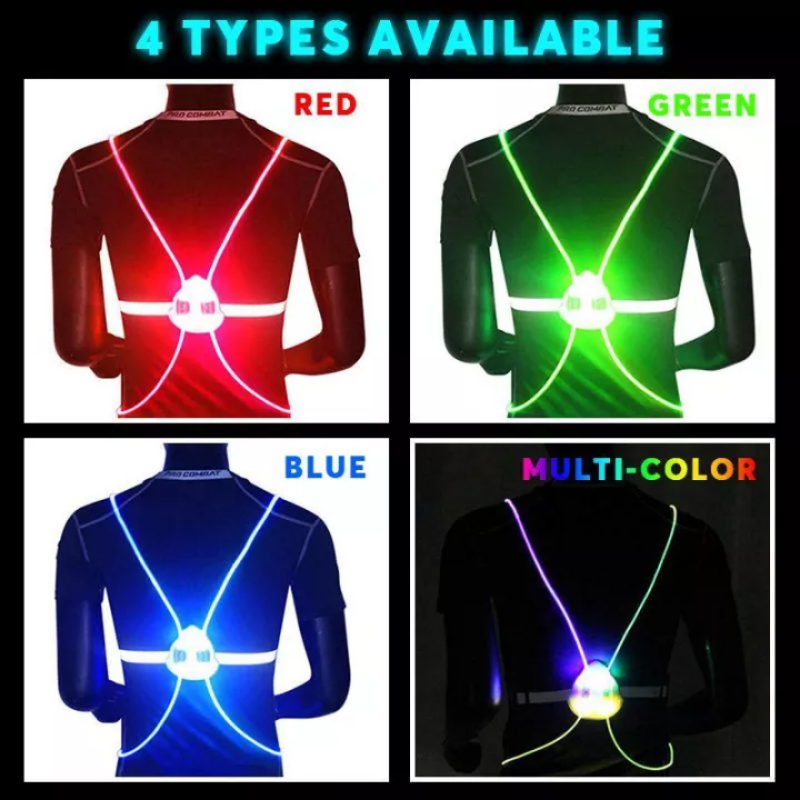 Our high visible Night-Safe Multi-color Illuminated Reflective Strap is for night-time safety while running, cycling, or any other outdoor activities. LED cables light up and flash multiple colors to warn oncoming motorists that you are there.