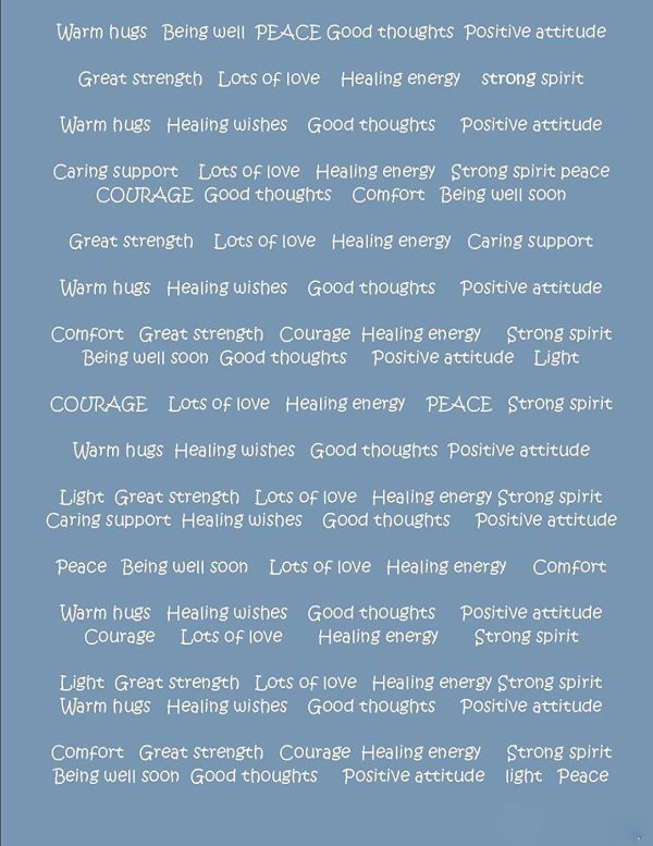 MESSAGE & WORDINGS: Warm Hugs, Positive Thoughts, Prayer, Strength, Healing Energy, Grace, Hope, Resilience, Warmth Positivity, Love, Healing, Prayer, Comfort, Peace, Harmony, Compassion, Rejuvenating Spirit, Serenity, Bear Hug, Joy, Fun, Pleasant Life, Happiness, Blissful, Mindfulness