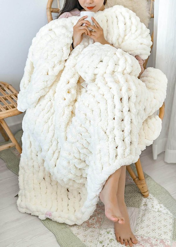 Chunky Knit Blanket – Beautiful Home Decor Throw – Soft Chenille Yarn