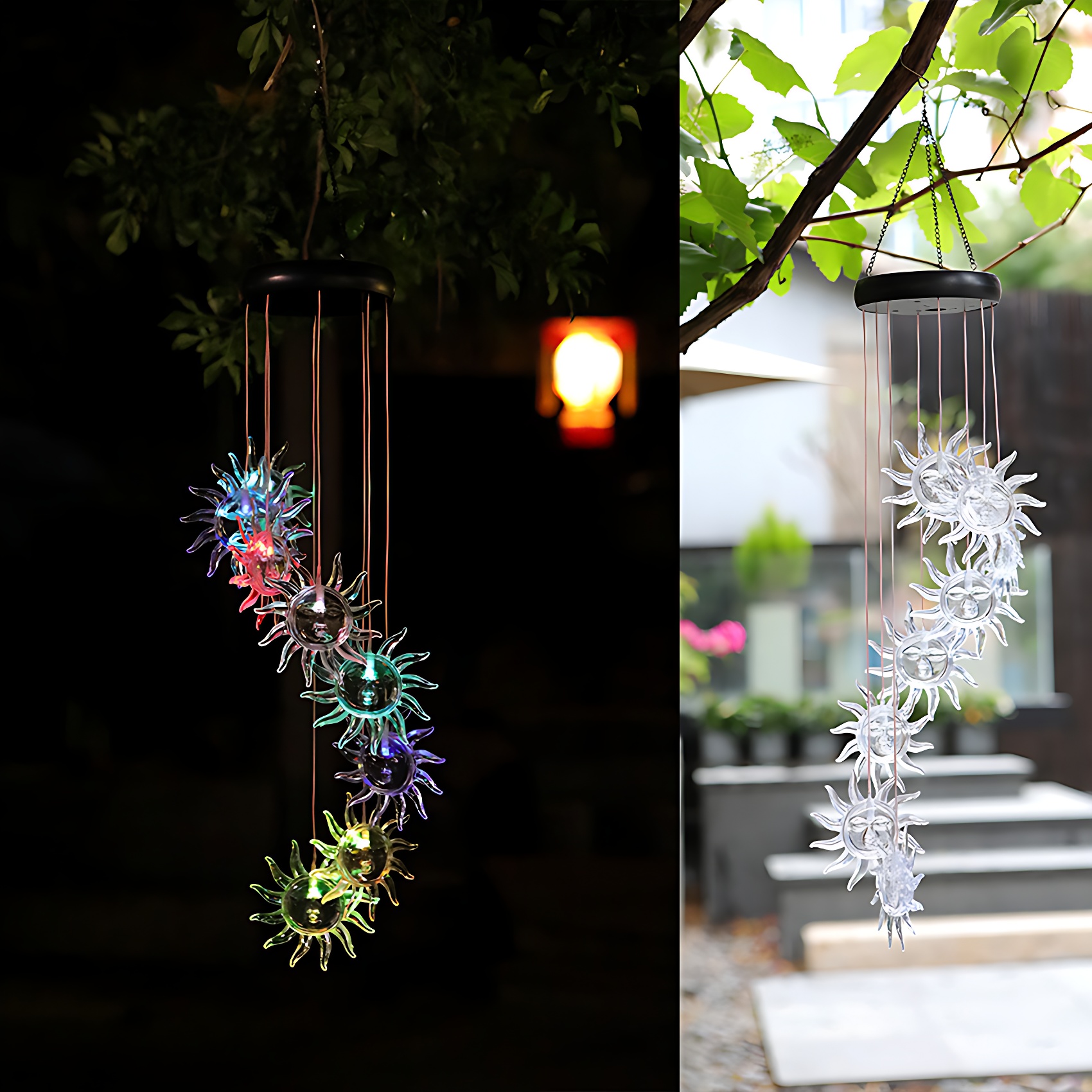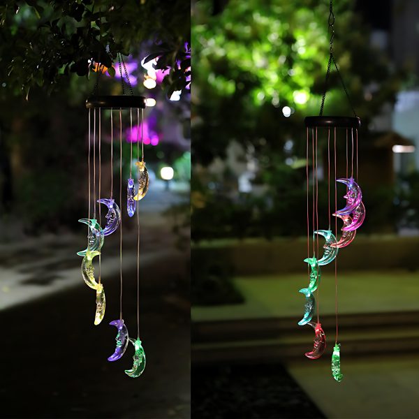 - Solar Light Wind Chime-Not only have beautiful light, but also provide pleasant sound, aluminum tubes of different lengths.Keep switch in ‘ON’ position,the LED solar wind chime will auto charge under direct sunshine,The wind chime light could last up to 6 – 8 hours when fully charged.