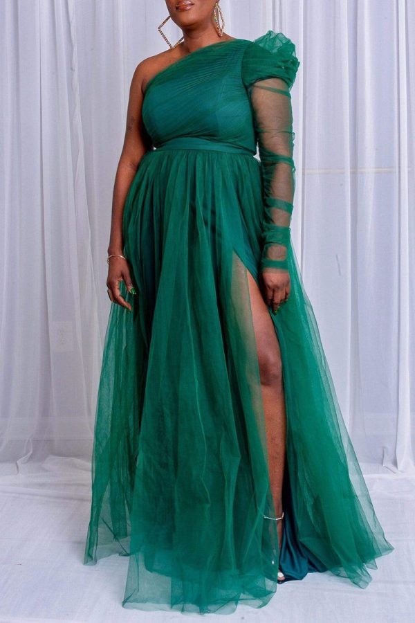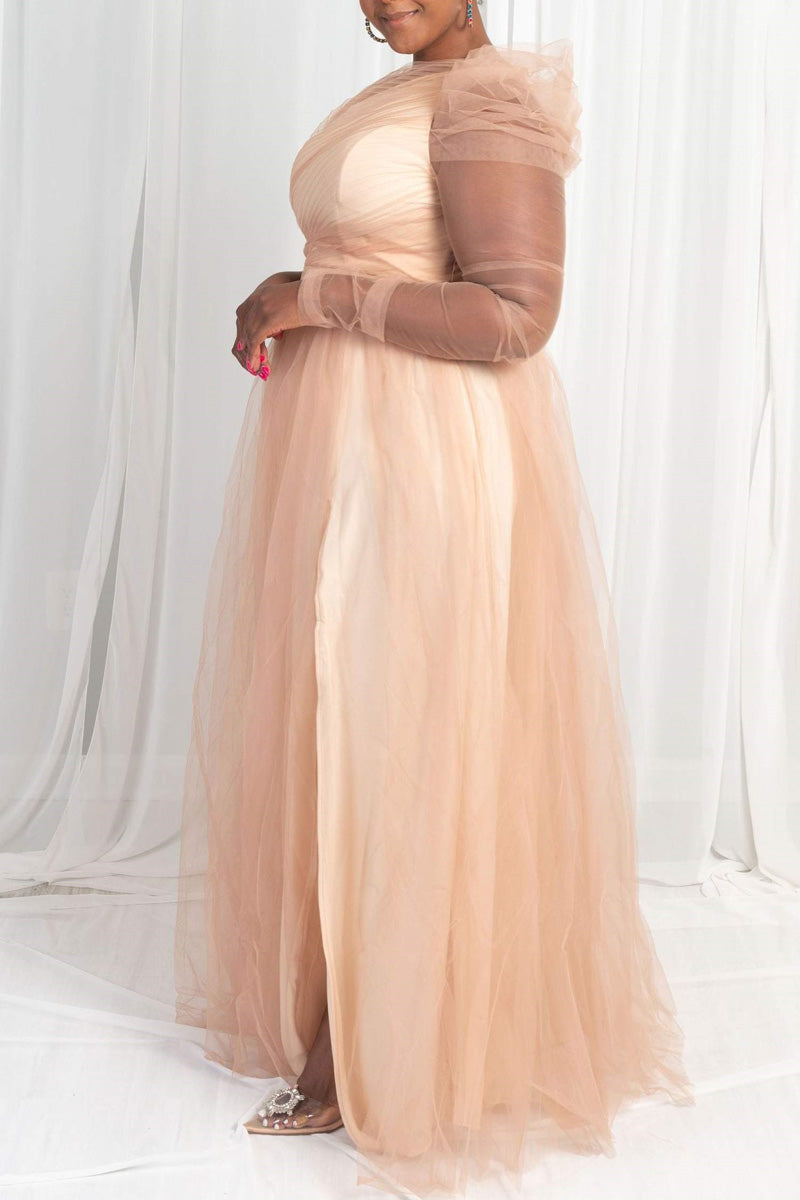 One Sleeve neckline Sheer long sleeves Side slits Lining