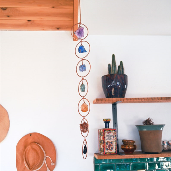 ▲ Chakra hanging length is 2 feet 6″ , and the leather cord is 8″ long with strong loop to hang from ceiling.