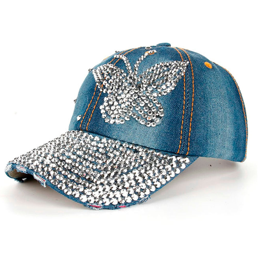 Spring Women Men Butterfly Denim Rhinestone Baseball Cap Snapback hats for women Random Color 180126-1