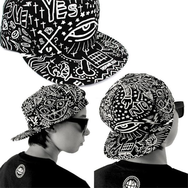 Summer Boy Baseball caps Graffiti Eye men Solid Canvas hats Vintage Flat men Hip Hop Hat doodle Hippie Snapback women Caps black