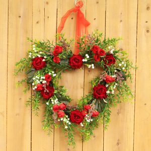 Use dried rattan as a heart frame featuring red berries and hearts. The red flower and string of lights are wrapped around the outside, making your garland still eye-catching at night, making the whole front door full of the romantic atmosphere of Valentine’s Day. Transform your bland front door into an attractive entryway. Welcome your friends and family with this Valentine’s door wreath.