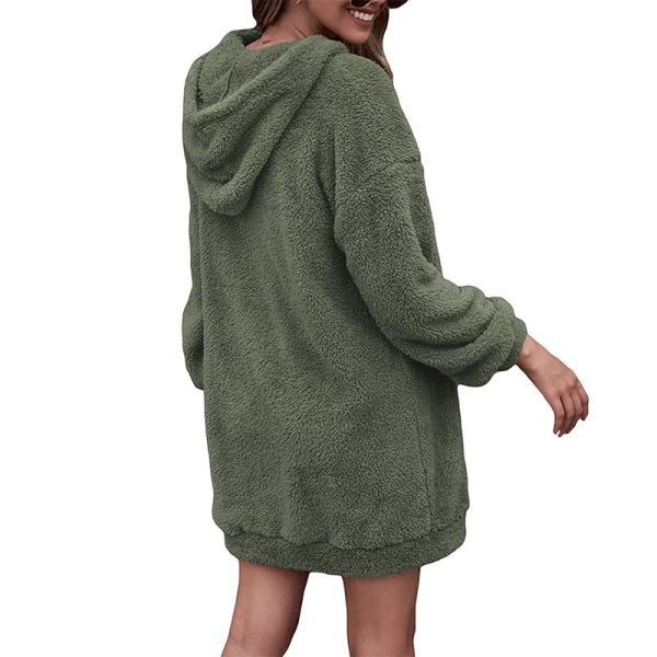 Women’s fuzzy sherpa pullover hoodie sweatshirts long sleeves front pocket fall winter outerwear
