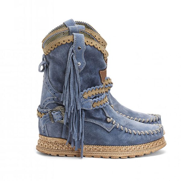 The shoes have beautiful thick handmade stitching, leather detailing, side fringing, and the rubber patterned outsole, this model is embellished with a cool leather ankle strap.