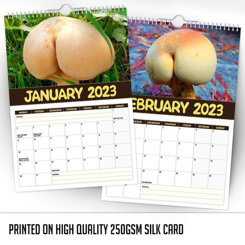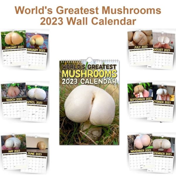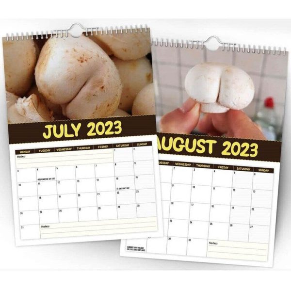 1. Funny Calendar: Mushroom Butt Wall Calendar is offering 12 months of calendars from January 2023 to December 2023, designed with different funny pictures of mushroom butt, making you laugh every time when seeing it.
