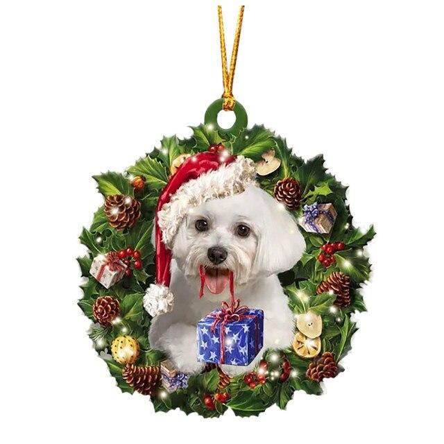 2021 Christmas Ornaments Hanging Decoration Gift Product Personalized Dog Wreath