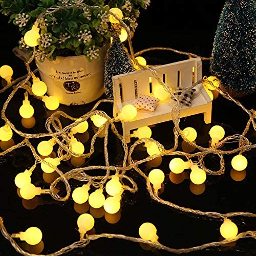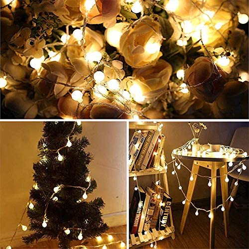 - ENERGY SAVING – The LED String Lights use new technology, consuming low power and insulates heat, remaining safe to touch. No glare, the soft warm lights protect your eyes. Ball String LED lights light in warm white color.