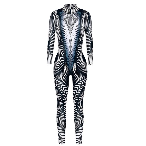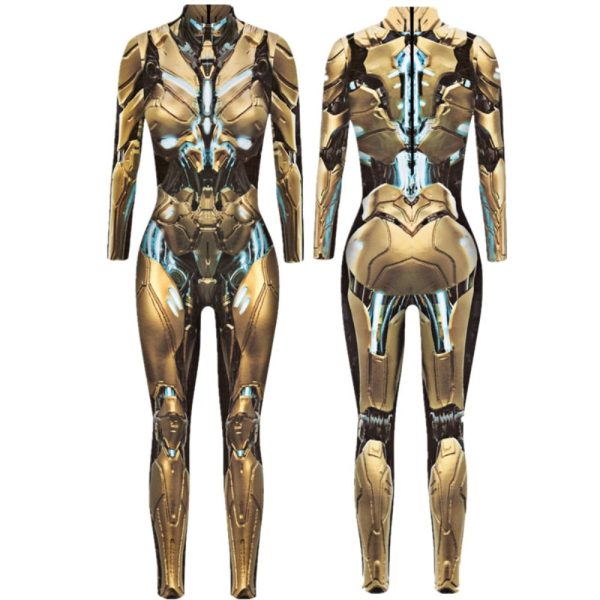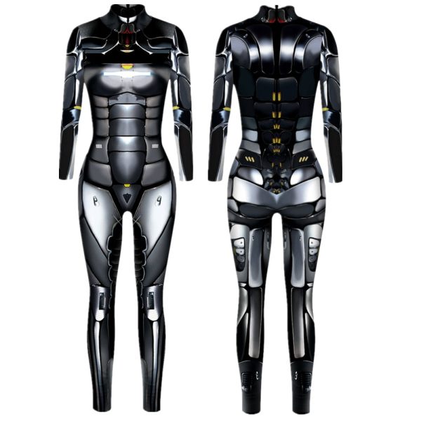 The 3D Robot Cyberpunk Bodysuit Costume is an awesome one-piece and full-body mechanical skeleton catsuit costume with a stunning, unique skeleton design.