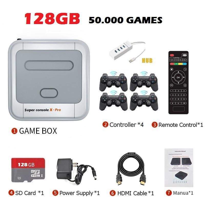 128GB BUILT-IN 50.000 GAMES + ANDROID TV + 4 CONTROLLERS + HUB
