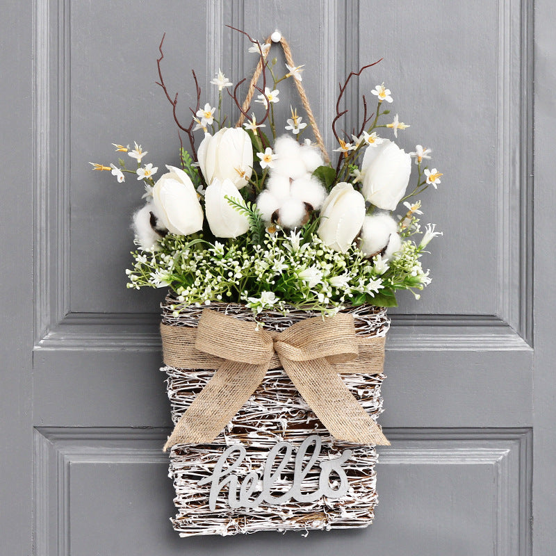 Artificial Flower Door Hanging Flower Basket Spring Wreath