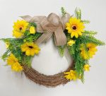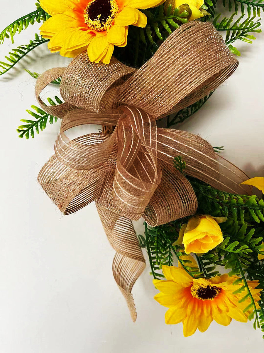 - Material: Outdoor realistic greenery,artificial sunflowers and brown ribbon.