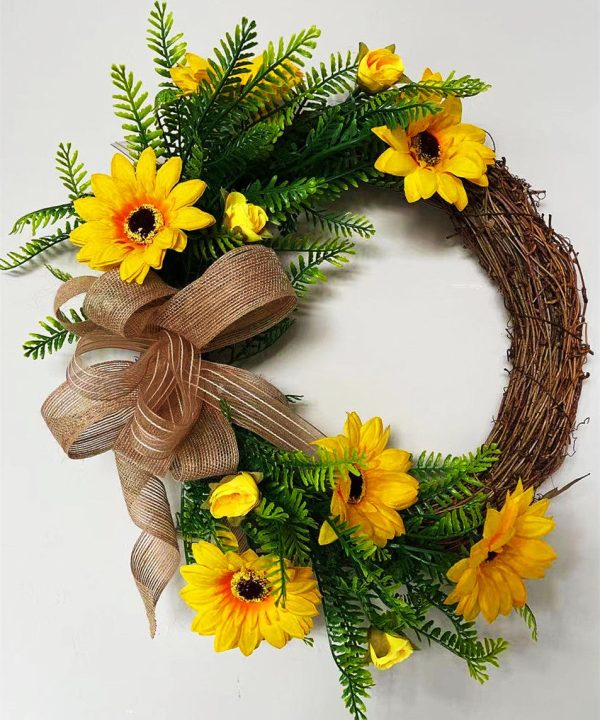 This spring and summer wreath is equipped with tender green leaves and grass, plus the theme style with sunflowers as the core so that your home is full of energy and a natural atmosphere.