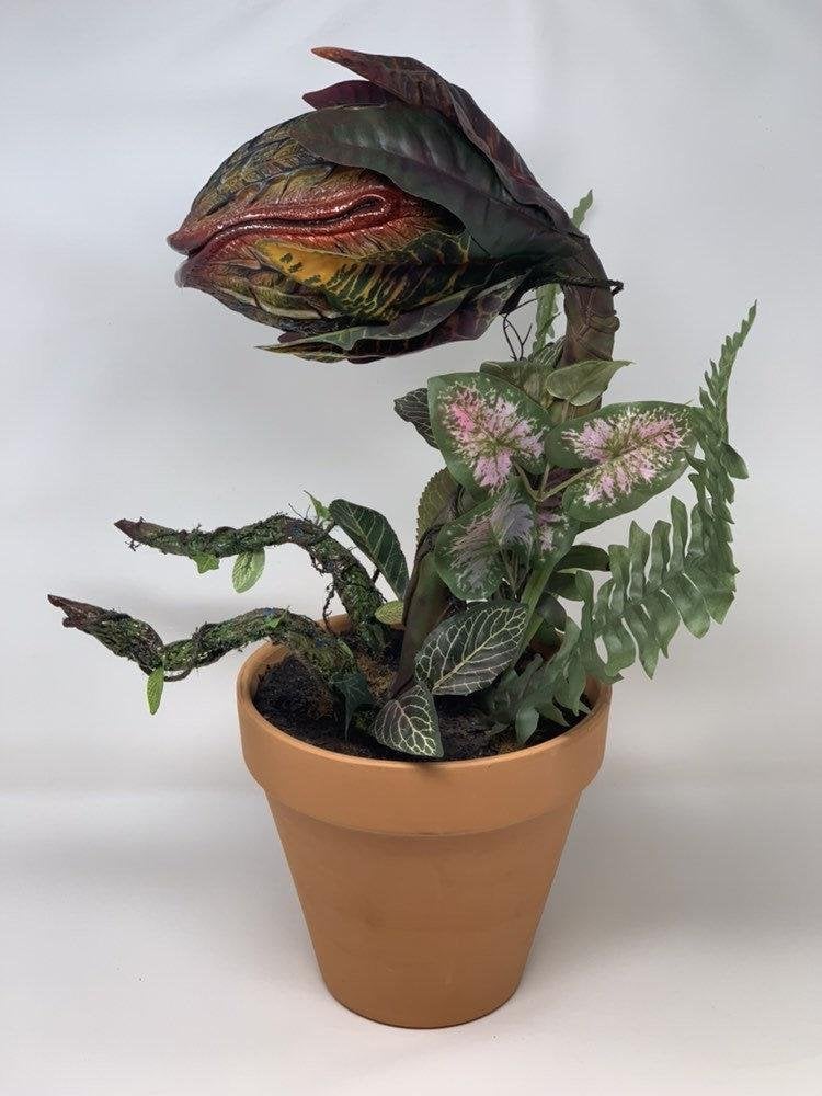 This Audrey 2 display piece is approx. 21 inches tall from the base of the pot to the crown of her head (based on the Terra Cotta variations; the Maxwell Coffee variation is a bit shorter). I really wanted the final design to feel very organic and alive. I built the head and ¡§arm vines¡§ to be poseable, which I find really helps to breathe life into her. The head and stem are cast in a durable rigid urethane and then airbrushed, hand detailed and sealed to protect her finish. Audrey II comes in two different variations. She can be “planted” in either a Terra Cotta pot or a movie-accurate Maxwell Coffee can. Thanks for checking out my shop!