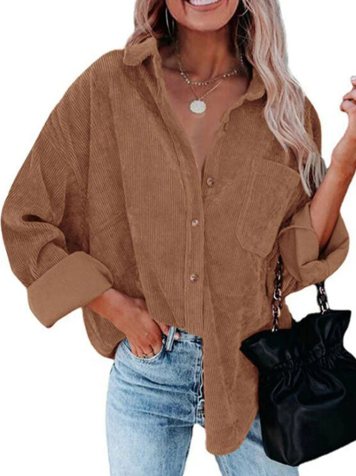 Autumn Corduroy Jacket Woman Long Shirt Jacket Women Button Coat Jackets Women Fashion Overshirt Loose Coat Female
