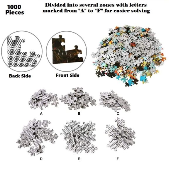 - CHALLENGING AND FUN – Develops hand-eye coordination, fine motor skills, problem-solving, shape recognition, memory, and task completion. The backside area of the puzzle has been divided into several zones with letters marked from “A” to “F”. Each puzzle has a letter A/B/C/D/E/F on the backside which makes the solving much easier.