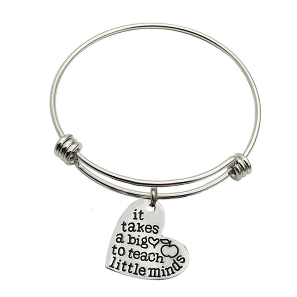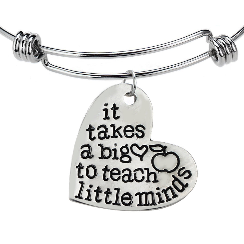 - ✅ FALL IN LOVE WITH BEAUTIFUL DESIGN AND PACKAGING – 2.56’’ diameter size adjustable bracelet is long enough and stylish, perfectly shows off the 0.87” silver heart pendant with words “It takes a big heart to teach little minds” beautifully engraved. It comes with a PREMIUM Black Velvet Pouch Which Makes it a Great Gift for birthdays, Mother’s Day, Christmas and holidays, or just to say “I love you!”