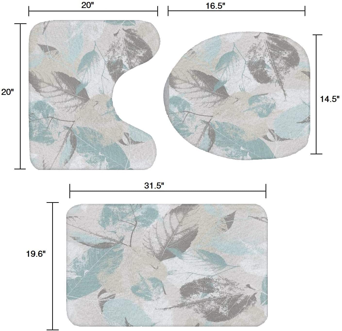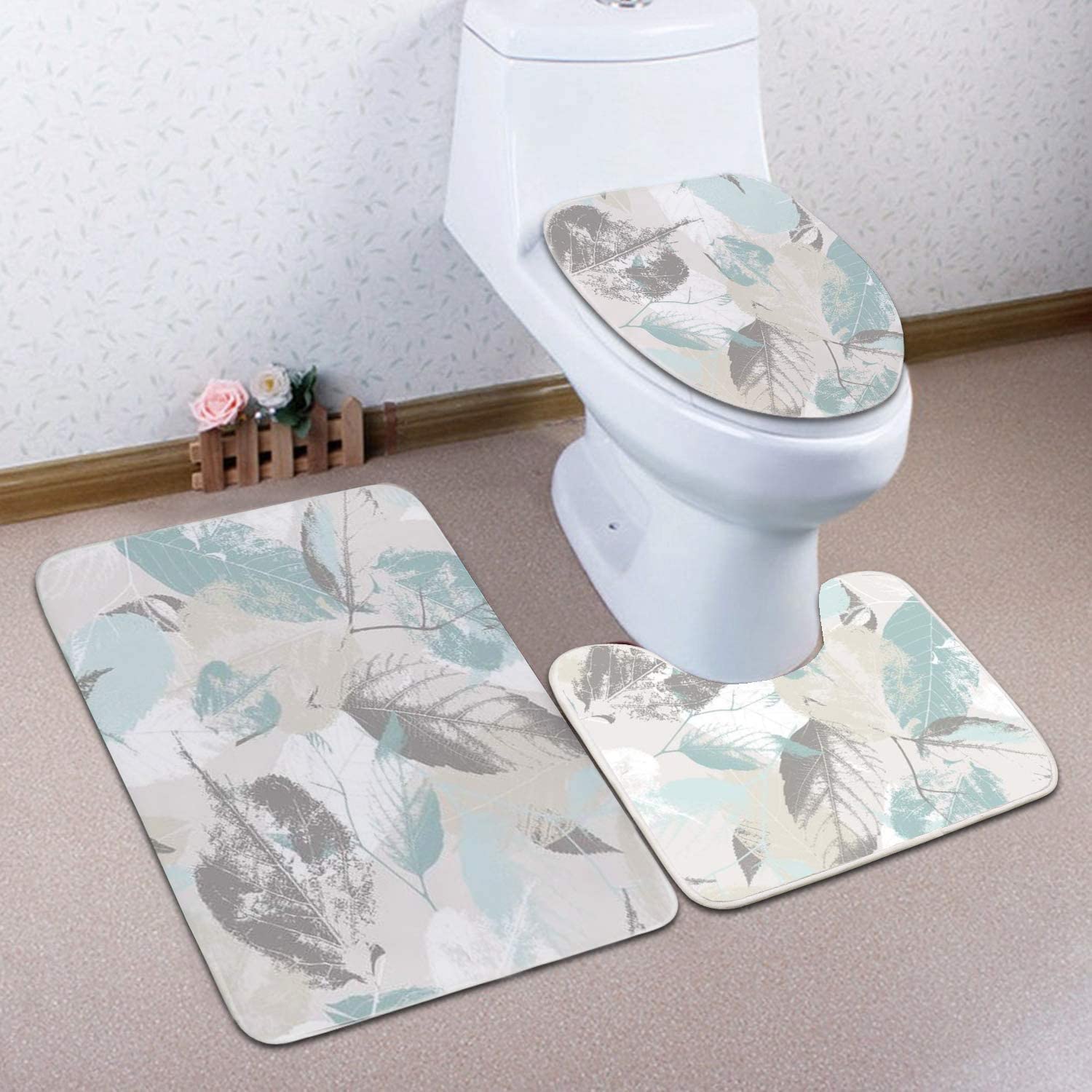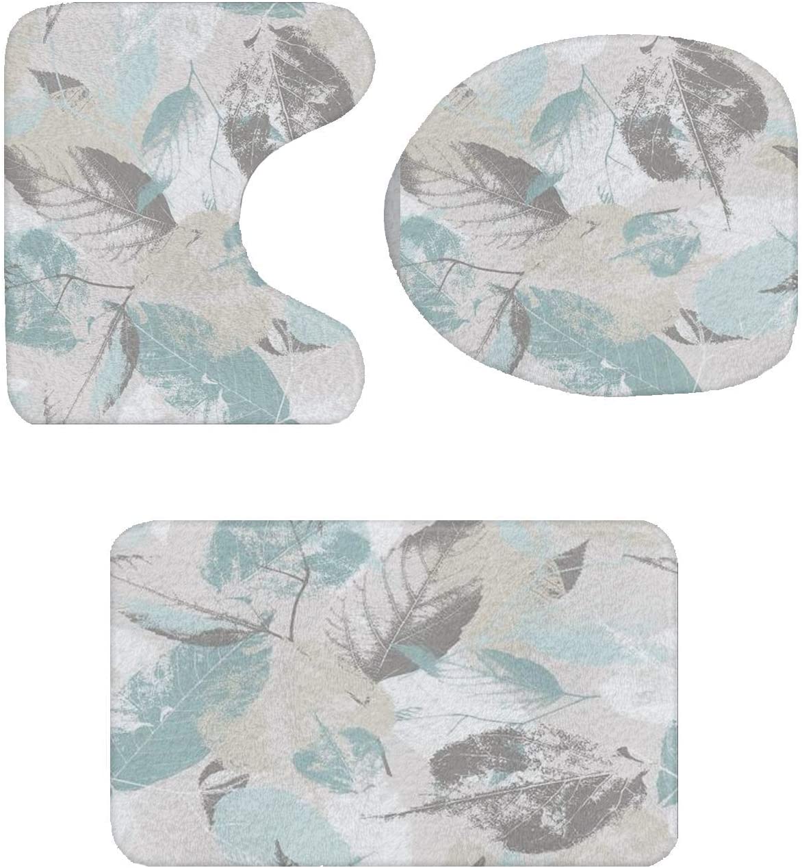 Bathroom Rug Set – 3-Piece Set – Mint Gray Leaves