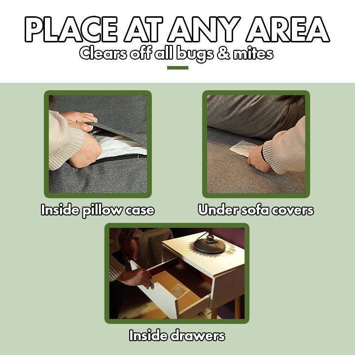 Natural Bed Bug Eliminator contains a 100% natural plant formula and kill bed bugs & mites effectively! Simply place these packs on your bed & furniture, and every corner of your house will be free from bed bugs & mites overnight!