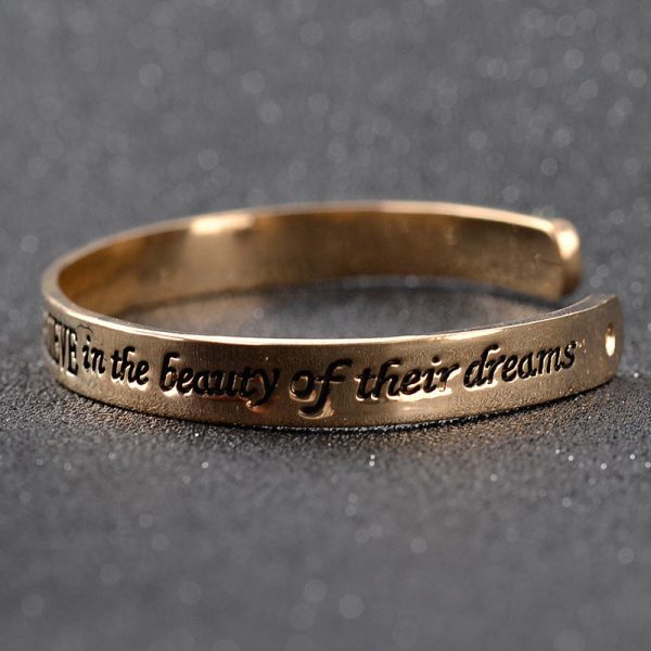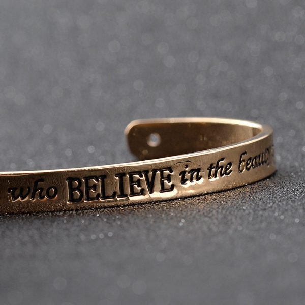 - FALL IN LOVE WITH BEAUTIFUL DESIGN AND PACKAGING – Stylish Cuff Bracelet with the words “The Future Belongs to Those Who Believe in the Beauty of Their Dreams” beautifully engraved. Bracelet comes with a PREMIUM Black Velvet Pouch Which Makes it a Great Gift for Birthdays, Mother’s Day, Christmas, holidays, and for Sport Lovers.