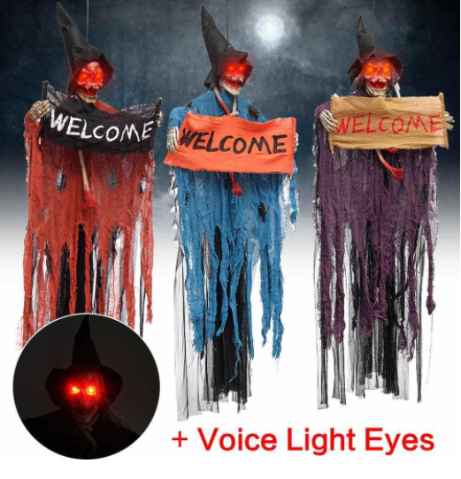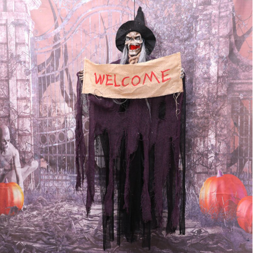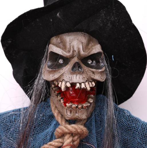 The god of death hanging on Halloween is decorated with a spooky skull face, a tall witch hat, a cloak that can fly in the wind, and long arms that can pose and stay still. They add a touch of weirdness to Halloween and will surely scare your friends.