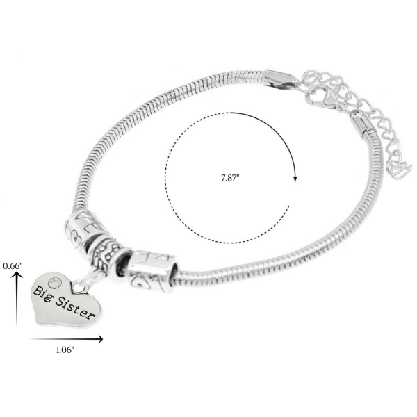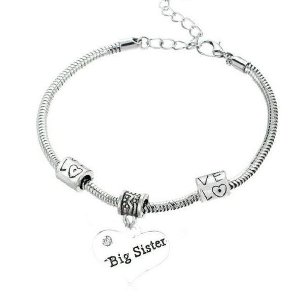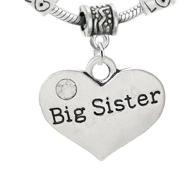 “Big Sister” Charm Bracelets, Adorable Big Sister Heart Bracelet, Best Family Jewelry Gift