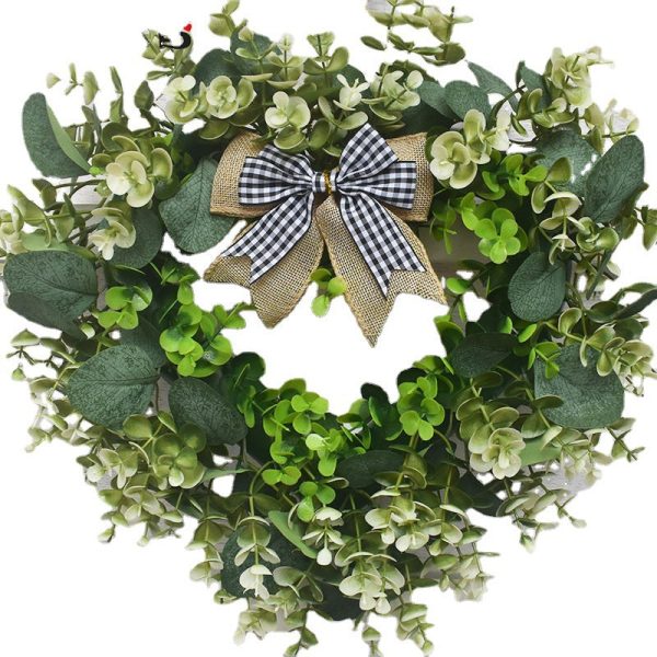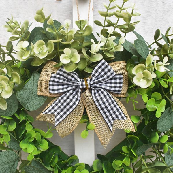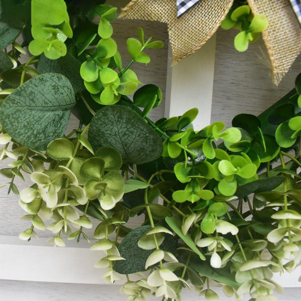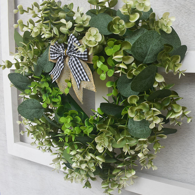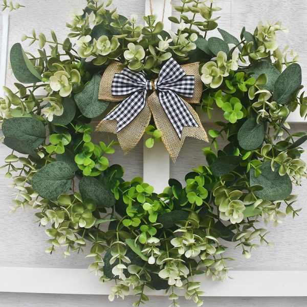 This wreath is unique, woven from two different shades of green eucalyptus and some leaves, with a cute bow on it. Turn your humble front door into a vibrant and attractive entrance, welcoming your closest family and friends into your home throughout the year.