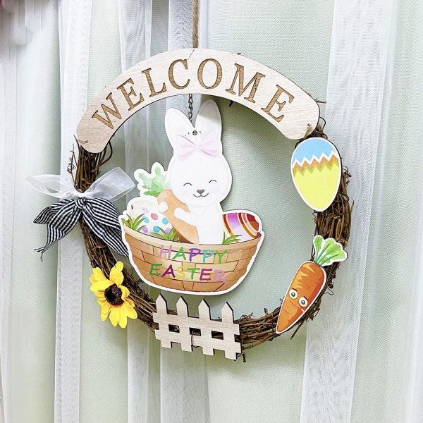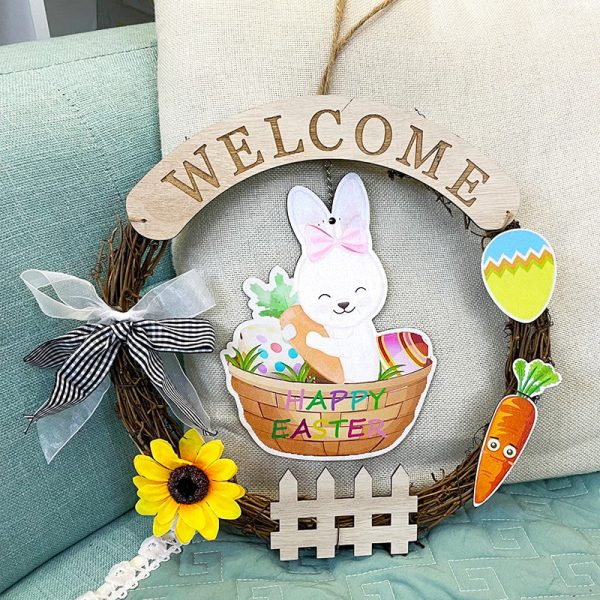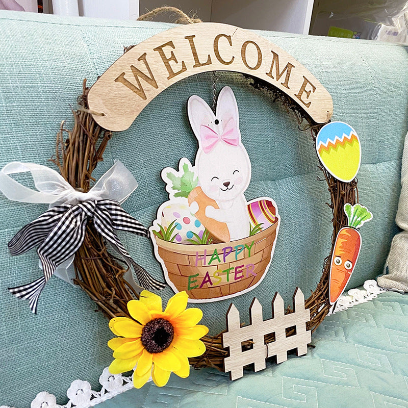 Bunny Wood Crafts Spring Easter Wreath Decoration