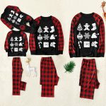 Christmas Christmas Ornament Pattern Print Patterned Contrast Black top and Black & Red Plaid Pants Family Matching Pajamas Set With Dog Bandana