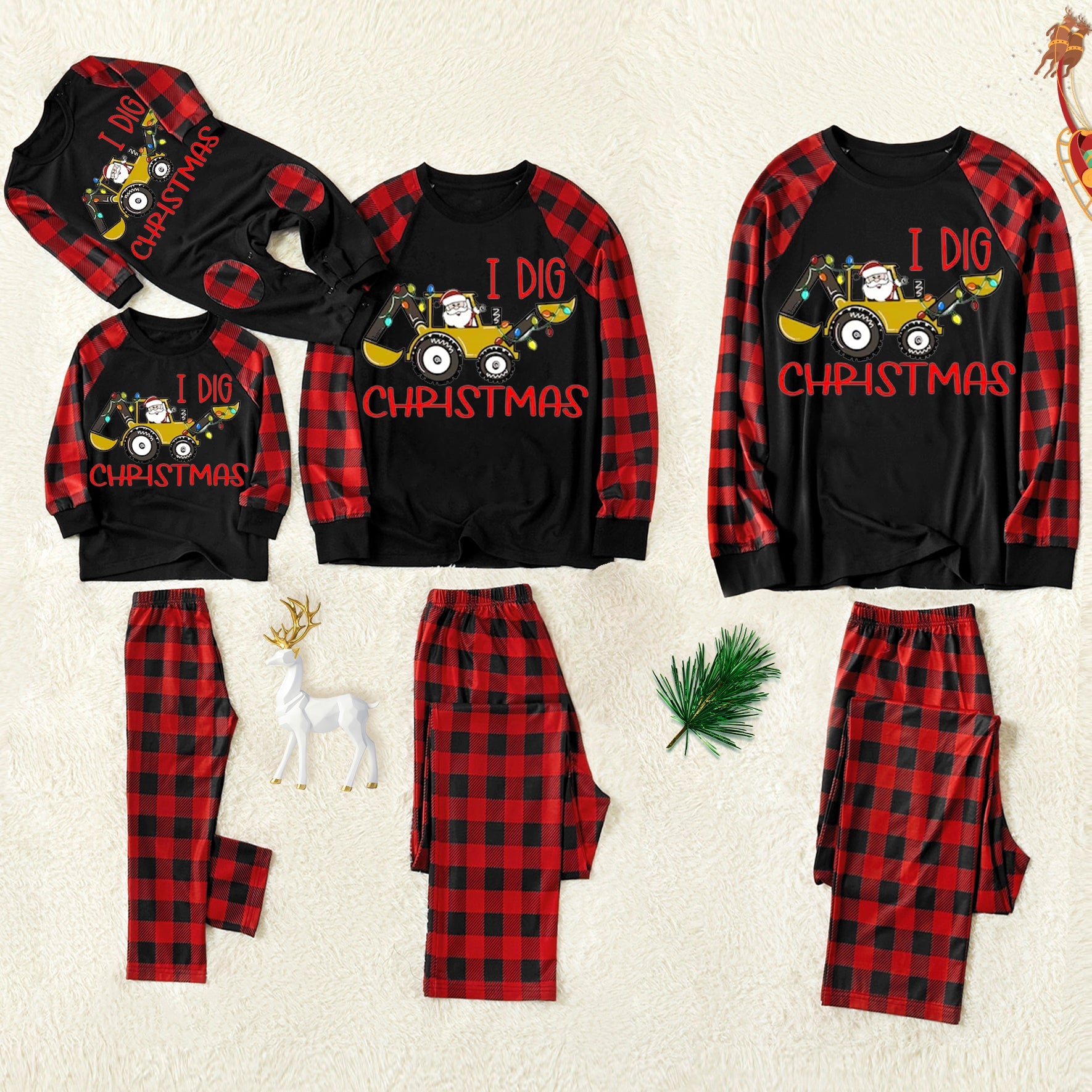 Christmas – I Dig Christmas- Letter PrintPatterned Contrast Black top and Black & Red Plaid Pants Family Matching Pajamas Set