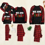 Christmas “We Are Family” Letter Print Patterned Contrast Black top and Black & Red Plaid Pants Family Matching Pajamas Set* Please add each size separately to your shopping cart.