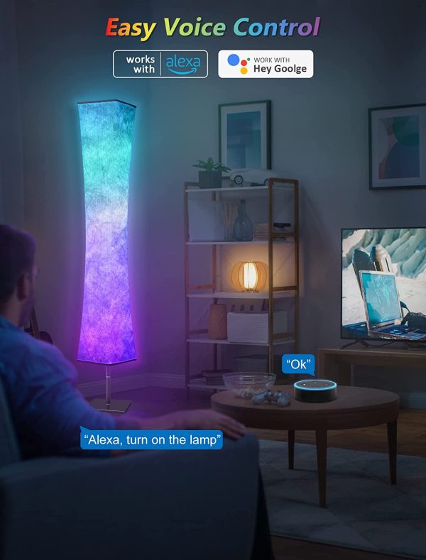 This 59-inch wave-changing LED floor lamp works with Alexa, and Google Assistant for your convenience. To adjust the brightness or change the color, you may utter simple voice commands.