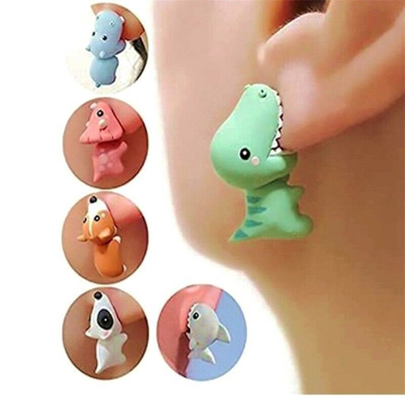 1 Pair Cute Animal Bite Earring Cartoon Soft Clay Animal Earrings Tyrannosaurus Bite Earrings Dinosaur Earrings Party Fun Gifts