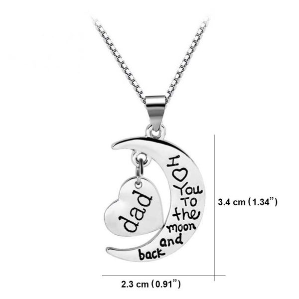 - FALL IN LOVE WITH BEAUTIFUL DESIGN AND PACKAGING – 20’’ long chain is stylish and perfectly shows off beautiful silver moon crescent pendant 1.34” x 0.91” that says “Dad I Love You To the Moon and Back”. It comes with a PREMIUM Black Velvet Pouch Which Makes it a Great Gift for birthdays, Mother’s Day, Christmas and holidays, or just to say “I love you!”