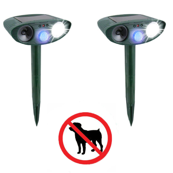 Dog Outdoor Ultrasonic Repeller – PACK of 2 – Solar Powered Ultrasonic Animal & Pest Repellant