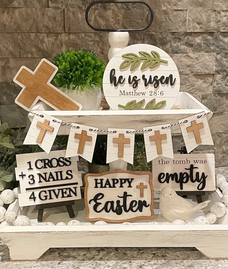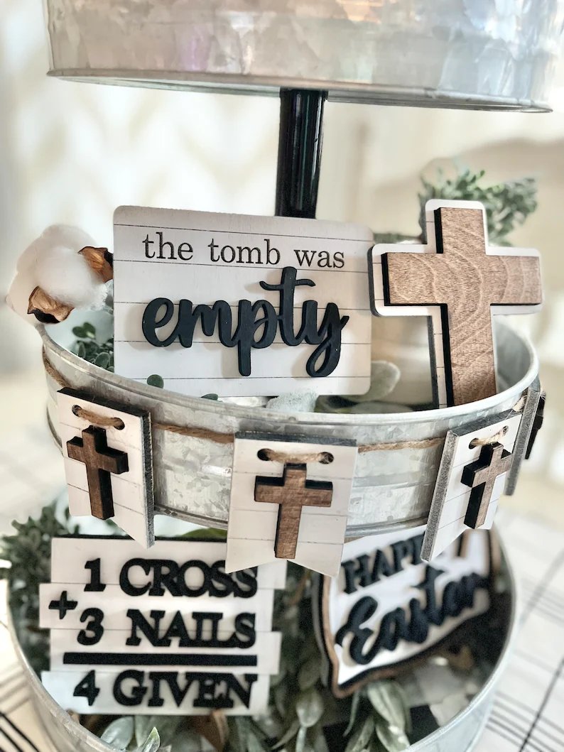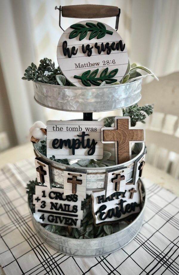 Happy Easter! He is Risen! Decorate and celebrate the resurrection of Christ with this beautiful tiered tray decor.