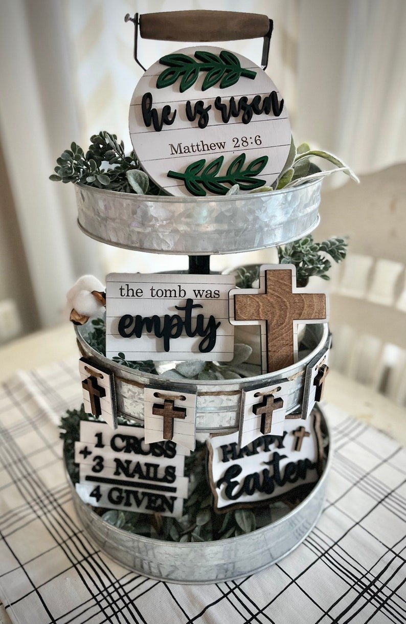 Easter Tiered Tray, He Is Risen, Happy Easter